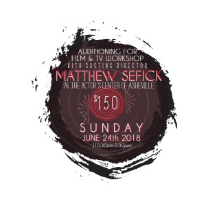 Our once A Month On Camera Audition Techniques Workshop w/ Kevin Patrick Murphy at The Actors Center of Asheville on Saturday, July 15th at 10am.
